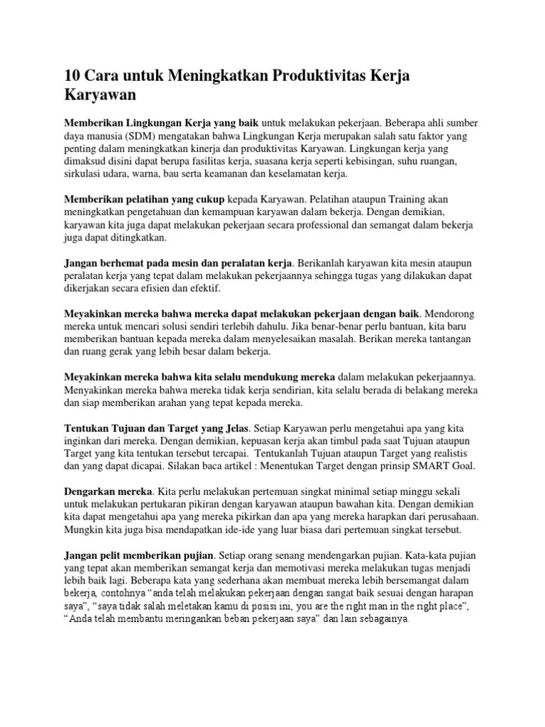 Cara Meningkatkan Produktivitas Sdm. Cara meningkatkan produktivitas dan motivasi kerja · tentukan target jelas dan realistis · bangun lingkungan dan budaya kerja positif · berikan . Cara tepat meningkatkan produktivitas kerja karyawan · 1. Dalam bekerja kita dituntut untuk selalu produktif. Menyesuaikan kemampuan pekerja dengan posisi kerja · 2. Sediakan fasilitas yang mendukung · 4.