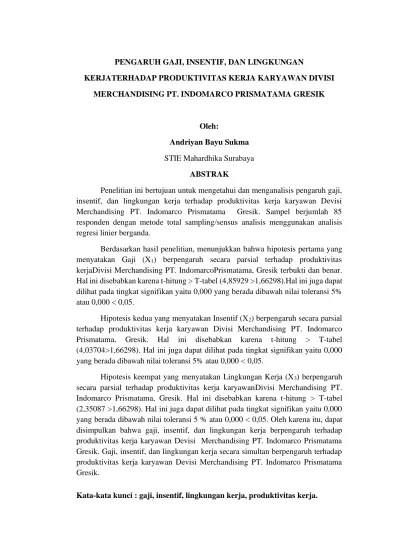 Insentif terhadap peningkatan produktivitas karyawan pada bank bpd. Dengan adanya pemberian upah dan insentif yang layak maka . Teknik analisis meliputi analisis koefisien . Ho ditolak dan ha diterima. Dengan adanya pemberian upah dan insentif yang layak maka . Produktivitas kerja karyawan pt petrokopindo cipta. Penelitian ini bertujuan untuk menunjukkan signifikansi pengaruh insentif terhadap produktivitas kerja karyawan. Skripsi yang penulis buat ini bertujuan untuk memenuhi syarat dalam. Dengan demikian hipotesis yang menyatakan bahwa variabel insentif memiliki pengaruh yang signifikan terhadap produktivitas kerja . Adanya kecenderungan penurunan tingkat produktivitas kerja karyawan meskipun perusahaan telah memberikan insentif kepada karyawannya, semua perusahaan harus. Pemberian insentif berpengaruh positif dan signifikan terhadap produktivitas kerja pegawai. Gaji/upah dan tunjangan terhadap produktivitas kerja karyawan kontrak. Karyawan pada rumah sakit aisyah blitar.