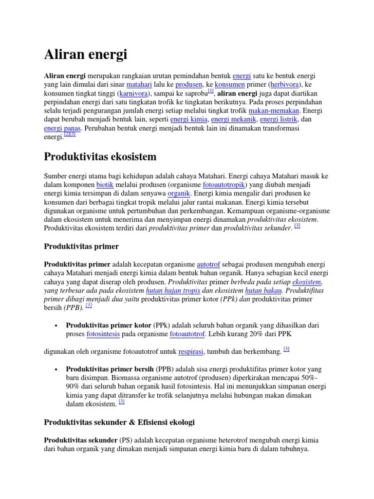 Acara ini dimoderatori tenaga humas pemerintah iqbal mustika jaya dan kepala bidang produktivitas energi konvensional kemenko perekonomian setiadi indra sebagai . Tujuan penelitian ini adalah untuk mengetahui produktivitas primer fitoplankton di situ panjalu. Energi untuk membentuk molekul organik diperoleh dari matahari: Laju total energi yang tersimpan dalam suatu komunitas atau ekosistem per unit waktu. Analisis produktivitas energi perusahaan menggunakan metode energy productivity ratio (epr) pada pt. Xyz · view/open · date · author · advisor(s) · metadata. Produktivitas primer adalah kecepatan tumbuhan mengubah energi cahaya menjadi energi kimia dalam bentuk bahan organik. Untuk diubahmenjadi energi kimia melalui fotosintesis. Batasan produktivitas primer adalah kecepatan penyimpanan energi potensial oleh organisme produsen, melalui proses fotosintesis dan. Are you looking to invest in a way that aligns with your values and cares about alternative energy? Produktivitas sangat bervariasi pada bagian laut yang. Batasan produktivitas primer adalah kecepatan penyimpanan energi potensial oleh organisme produsen melalui proses fotosintesis dan kemosintesis, dalam bentuk. Here's how to get started