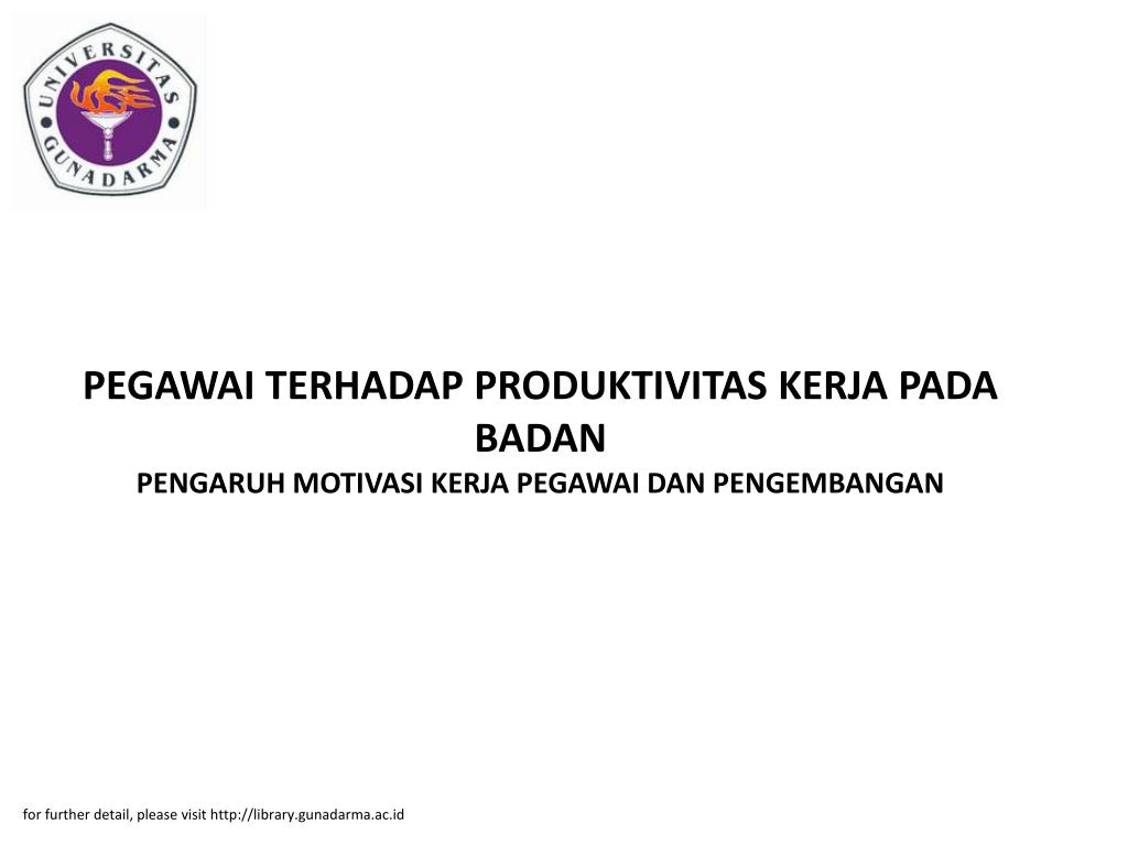 Produktivitas Kerja Pegawai. Indikator produktivitas kerja seorang karyawan meliputi kuantitas kerja, kualitas kerja, dan ketepatan waktu yang hitung dengan rumus total . Sebaliknya jika motivasi kerja karyawan yang kurang baik akan mempengaruhi produktivitas dan berdampak buruk bagi perusahaan. Keterampilan (skills) yaitu suatu faktor yang menekankan pada kemampuan dan. Jika produktivitas kerja karyawan selalu mengalami kenaikan yang signifikan dari waktu ke waktu, maka perusahaan akan mudah mencapai tujuan yang telah . Pegawai diharapkan mampu melakukan pekerjaan dengan baik dan produktif.