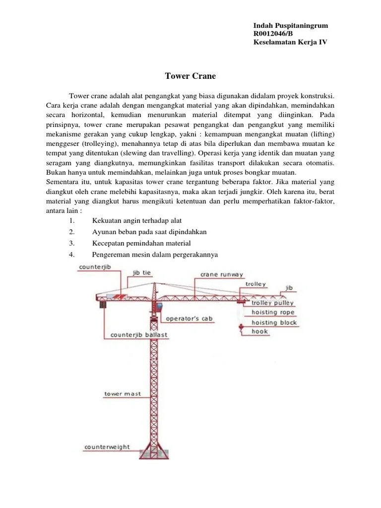 Satuan produktivitas tower crane tergantung pada pekerjaan yang dilakukan. This research was conducted by observing the tower crane potain k / 30 in the field, and simulating it is productivity calculations with tower cranes for those . Perbandingan biaya dan produktivitas tower crane. Analisis produktivitas tower crane pada. Static tower crane dan mobile.